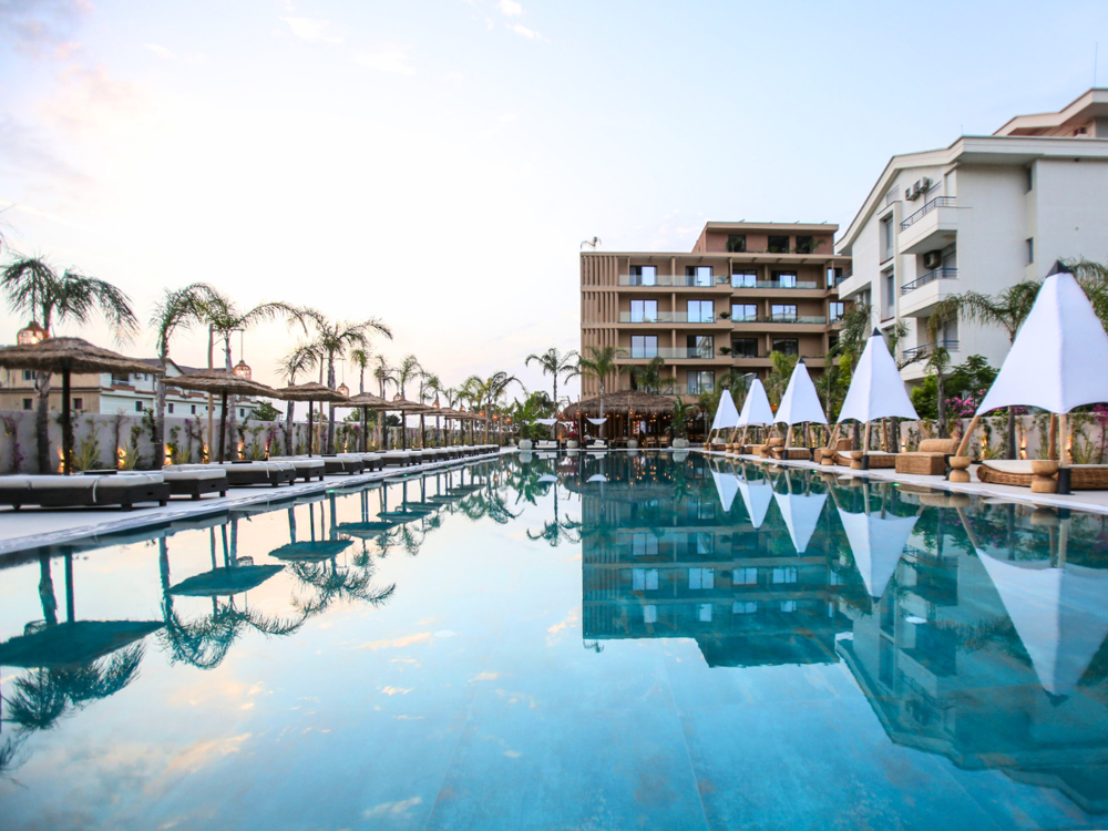 Regina Palm Resort is a luxurious five star featuring a blend of comfort and elegance, with spacious and stylishly decorated rooms equipped with modern amenities such as air conditioning, minibar and complimentary Wi-Fi. Guests can enjoy a diverse culinary experience at the buffet restaurant which serves a variety of dishes, or opt for light refreshments at the snack bar. The resort boasts a large seasonal outdoor swimming pool and access to a private beach area, providing ample opportunities for relaxation and leisure. For business travellers meeting and banquet facilities are available, making it a versatile destination for both work and leisure.