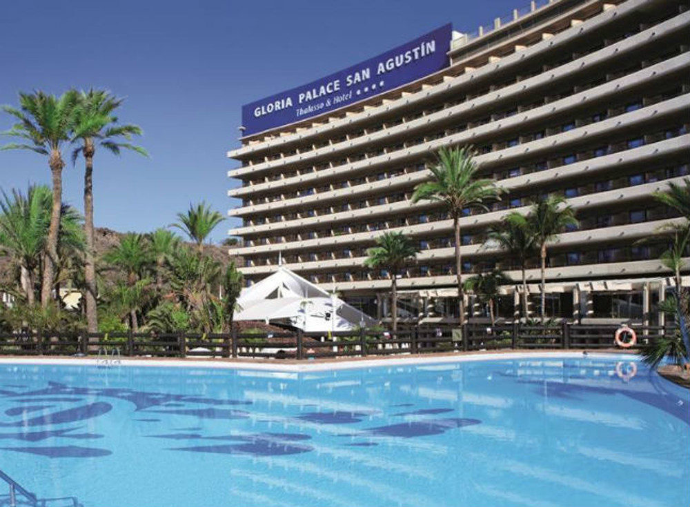 The Gloria Palace San Agustin hotel is located in a very quiet zone of the high side of San Agustin, about 600 metres away from the beach and 2 kilometres from the well-known tourist resort Playa del Ingles. The shopping centre of San Agustin and the Casino is only 600 metres away from the hotel. A rich entertainment programme invites guests to participate in diverse activities during the day and in the evening with games, contests, competitions, professional spectacles, and shows. The hotel has the largest thalasso therapy (health centre with sea water) in Europe and a large beauty centre. The airport of Gran Canaria is 20 kilometres away.