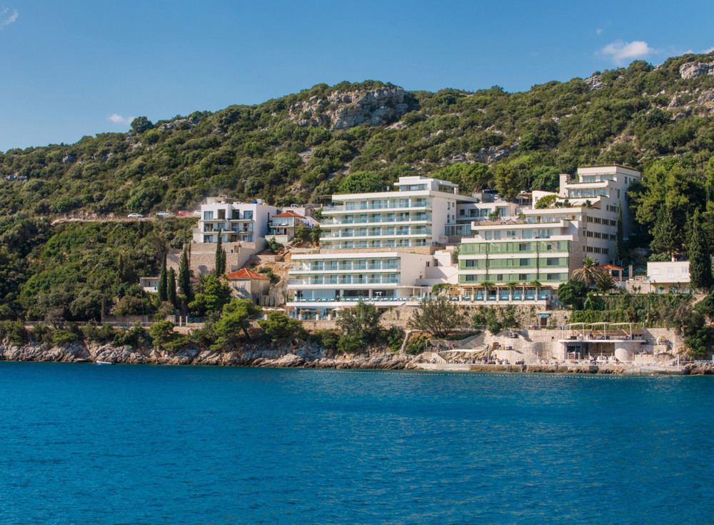 In a beautiful setting for watching the sunset, this luxury boutique hotel is nestled on a hillside with commanding panoramic views of the Adriatic Sea. It has its own beach and two lovely pools, a gym, wellness centre, two restaurants and three bars, including one in a natural cave.