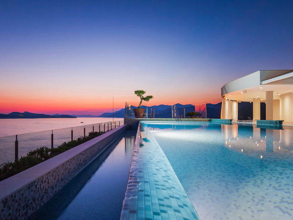 The terrace features an infinity pool where guests can experience some of the most spectacular sunset views over the Adriatic Sea and the nearby reefs.