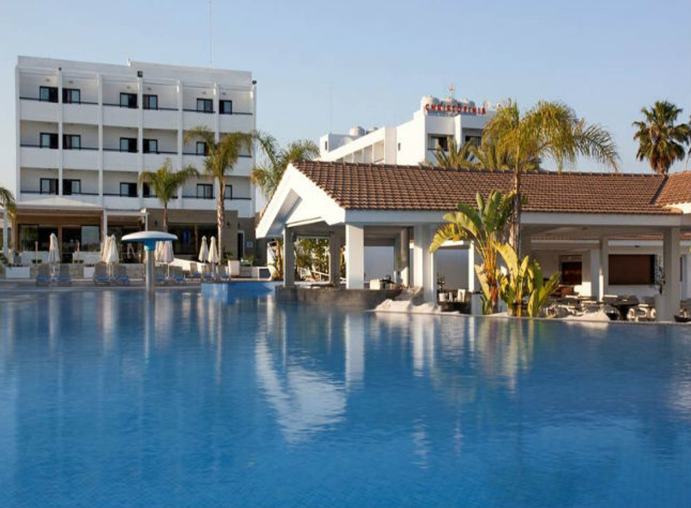 The Christofinia Hotel is set amongst attractive gardens on a quiet side road. Beach lovers will not have to venture far to find the nearest sandy beach as Nissi Beach is around 100 metres away. After a buffet breakfast, guests can relax beside the swimming pool or visit the beach and take part in beach games. Children have their own swimming pool, playground and organised activities, while parents and older guests can work out in the fitness room or make use of the tennis courts, indoor swimming pool and sauna. In the evenings, the cocktail bar is the ideal place to relax, before moving on to the restaurant for some traditional Cypriot cuisine. Ayia Napa centre is approximately 2 kilometres away and there is a nearby bus stop that provides a regular service. This hotel appeals to couples and families alike.
