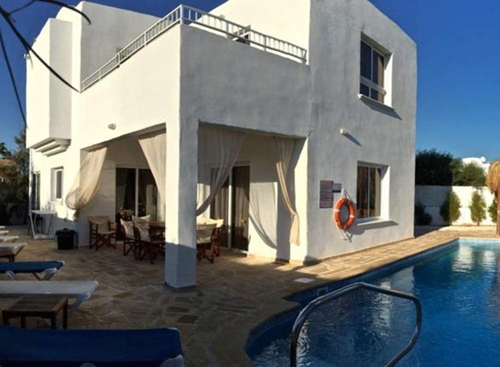 Thalassines Villas is a private paradise of 10 luxurious, beachside villas created by Cypriot sculptor, Andreas Limbourides, who lives next door and makes it his business to be as helpful as he can be to guests. Prior to your arrival he will shop for provisions, and each villa will contain a complimentary welcome basket of wine, mineral water, milk, coffee, tea and sugar. Lush, tropically greenery surrounds the well-kept, comfortable villas, each with a private pool cleaned daily, and spacious sunbathing terrace. Your villa will be cleaned and bed linen changed twice a week at no extra charge, and there are laundry and dry cleaning services on hand for clothes.