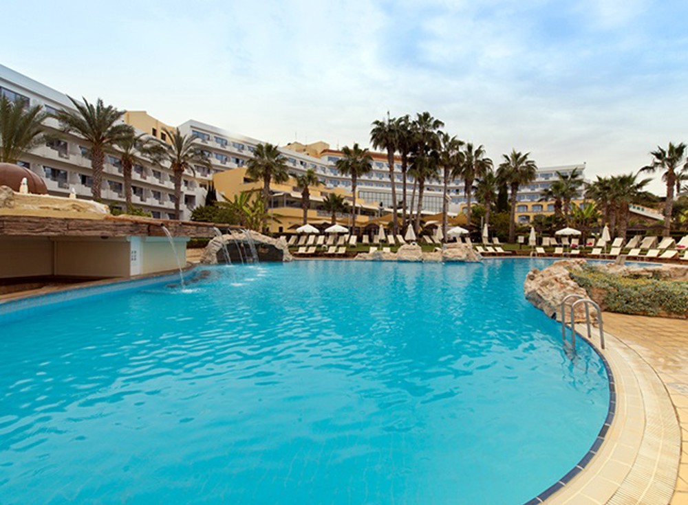 Directly on the beach of Chlorakas, Pafos, the hotels by car are only a 5 minutes drive from the picturesque harbour of Pafos and 20 minutes from the airport. The St. George Chapel and Boat, two historical landmarks of the area, constitute an integral part of the hotel grounds and design.
