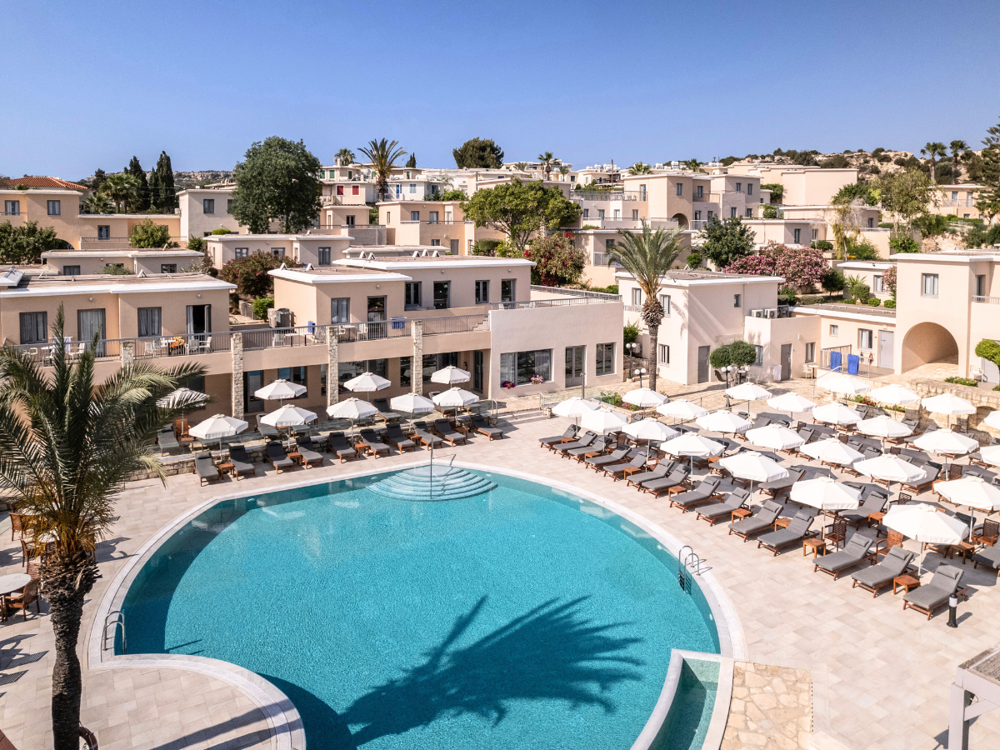 The Louis St. Elias Resort & Waterpark is situated on a green hillside overlooking Protaras bay. It is only a 15 minute walk to the beach and only 5 minutes walk to the centre of Protaras. The resort rests on a total of 40.400 sq. metres of beautiful gardens. The spacious studios and suites, with their unique architecture and amazing views give a feeling of independence and relaxation. The resort’s facilities include a reception building with a bar and sitting areas, a main restaurant with extensive verandas, a brand new tavern, a swimming pool with a second bar and terrace, two kids clubs and playground, tennis court, a second pool with water slides, a kids pool with water games as well as a spa.
