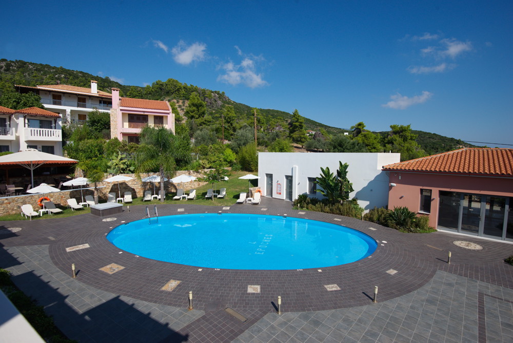 The 4 Epoches Alonissos Hotel was built in 2011 and is situated in the lovely village of Steni Vala. It resides amidst the olive groves only 200 metres from Glyfa Beach and only 10 kms from the port of Patitiri. Agios Petros beach is only 800 metres away.