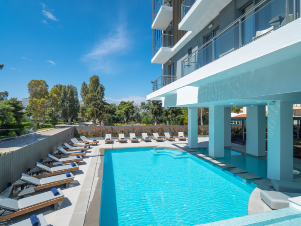 Here’s what to expect from a stay at Glyfada Riviera Hotel; guests will savour the best of Mediterranean gastronomy, amplify their sense of well-being by visiting the hammam and spa or enjoy a swim in the outdoor pool.