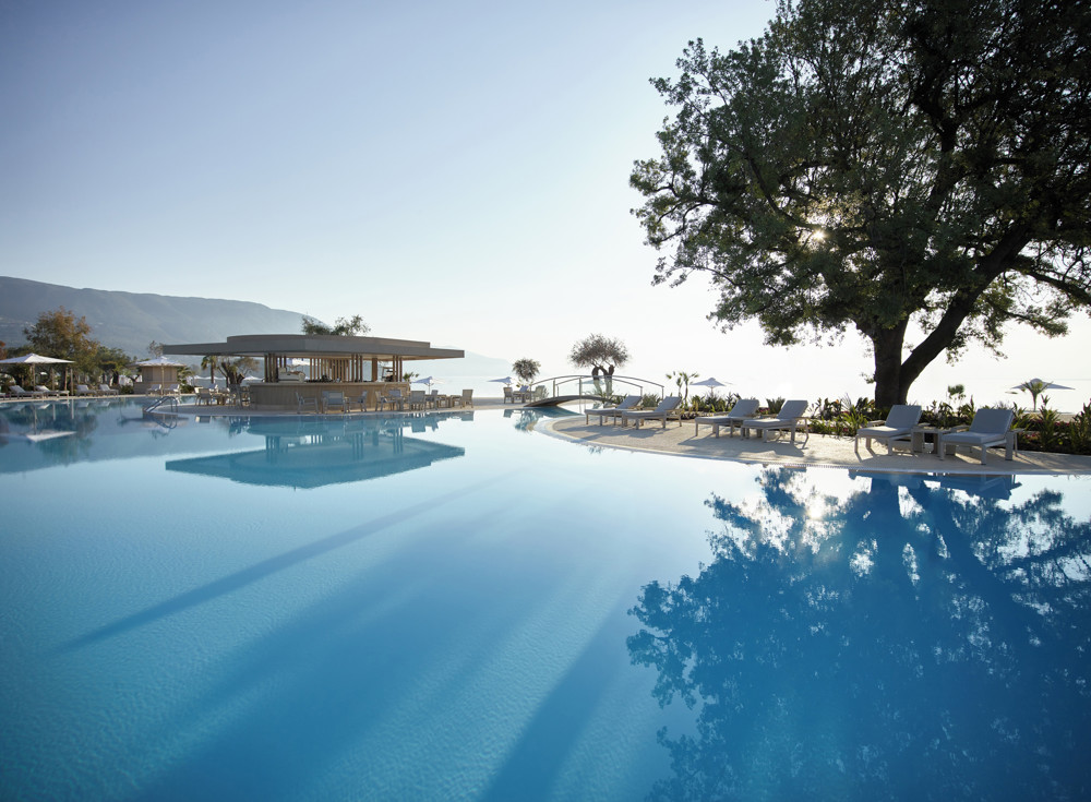 Accommodation includes double rooms, family rooms, suites, bungalows and villas, some with dazzling views across the turquoise Ionian Sea, and some with private pools or gardens, and all featuring air conditioning, Wi-Fi, smart TV and Nespresso coffee machines.