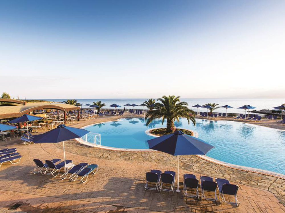 Meals: Full American breakfast (07:00-10:00), long sleeper breakfast (10:00-10:30 continental), lunch (12:30-14:30 and dinner (19:00-21:30) accompanied by soft drinks, juices, local beer and wine (white or red), all self-service. Theme buffet evening three times per week - Greek night, Italian night and Asian night. A La Carte restaurant (1 per stay, reservation required).