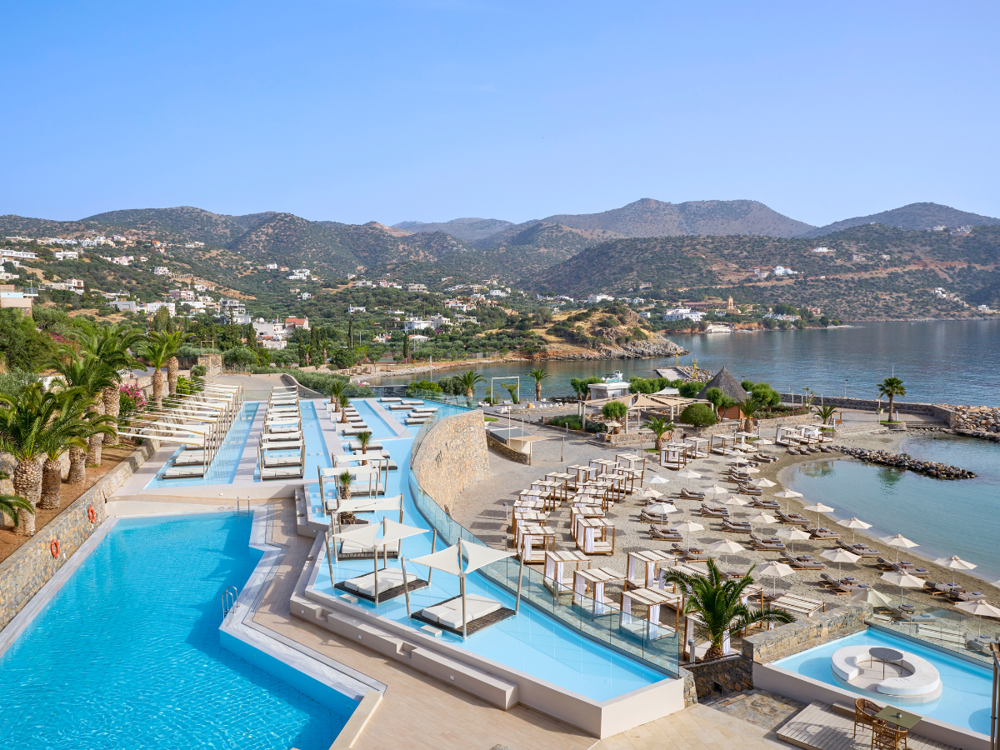 Unprejudiced luxury right on the Seafront. Vivifying the incomparable worth of authentic Cretan hospitality, Zeus Eleva Mirabello Bay is dedicated to providing superior services and extraordinary adventures in a masterfully renovated complex encompassed by the verdurous hillsides of Lassithi and the euphoric Cretan Sea. Motivated by an unceasing fervor of manifold evolution, Zeus Eleva Mirabello Bay's bungalows and suites have been exceedingly upgraded, and 125 marvelous private and jetted pools were added to this one-of-a-kind wonderland. Ideally designed for families, couples, and event participants, the 343 guestrooms, suites and bungalows intelligently blend the contemporary refinement and the serene elegance with the island elixir and synthesize an unparalleled hideaway ornamented with olive trees, perfect for your bespoke experiences.