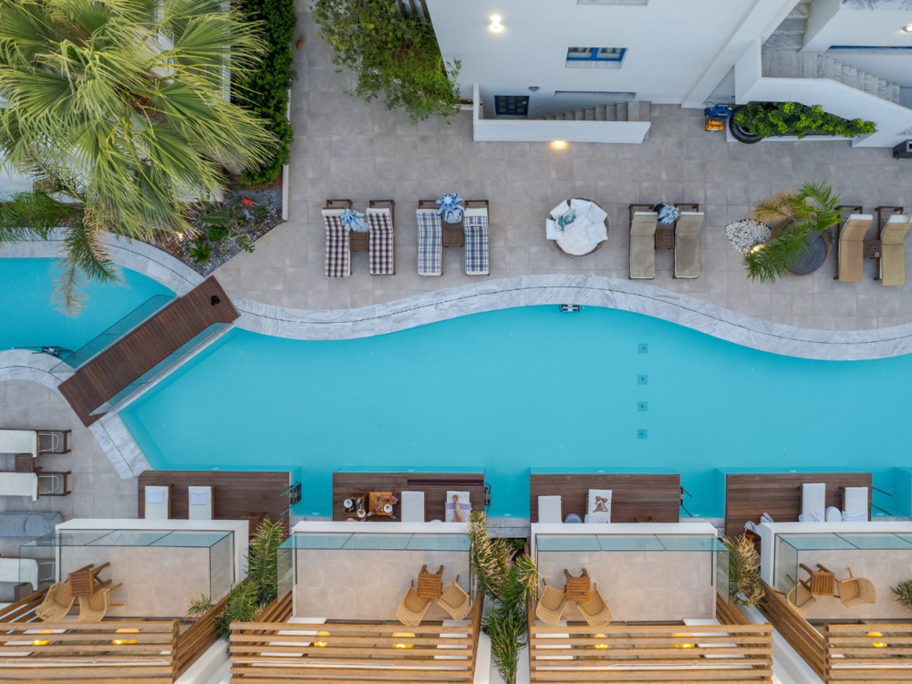 Indulge in the modern elegance of the accommodations, meticulously designed for both style and comfort. Whether lounging by the pool or taking in panoramic views of the Aegean Sea, every moment at Galazio Beach Resort is a testament to refined living.