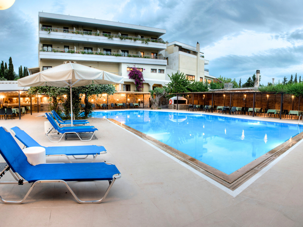 Miramare Hotel Eretria is a tranquil retreat on the scenic island of Evia, surrounded by gardens including olive, mandarin, lemon, orange, fig and almond trees. Guests can enjoy elegantly designed rooms, a refreshing pool, and exceptional dining.