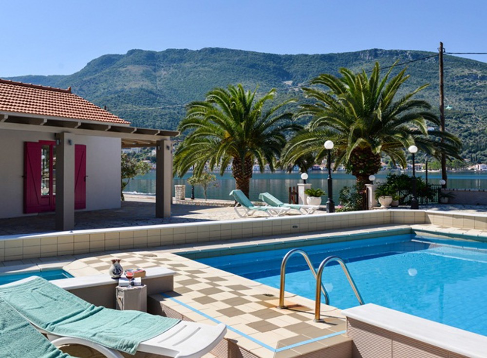 Captain Yiannis Hotel is located on the bay road on the eastern bayside of Ithaki's capital, Vathy, in a picturesque area which overlooks the bay toward the town center and up to Perahori village in the mountains behind Vathy.