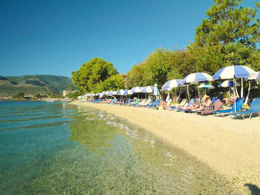 Avra Beach in Lefkada is a tranquil haven set amidst stunning natural beauty. The Avra Beach Hotel, located right on the beach, offers guests mesmerising views of crystal blue waters and a lush green garden. This scenic setting is perfect for unwinding in the sun.