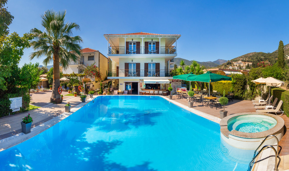 The hotel is a 50m stroll from Nidri Beach, which is lapped by the crystal-clear Ionian Sea, while the resort centre and harbour-front, lined with tavernas and restaurants, are a 10-minute walk so it’s easy to wander along for a glass of wine or stop for dinner with choices from classic Greek dishes to international cuisine.