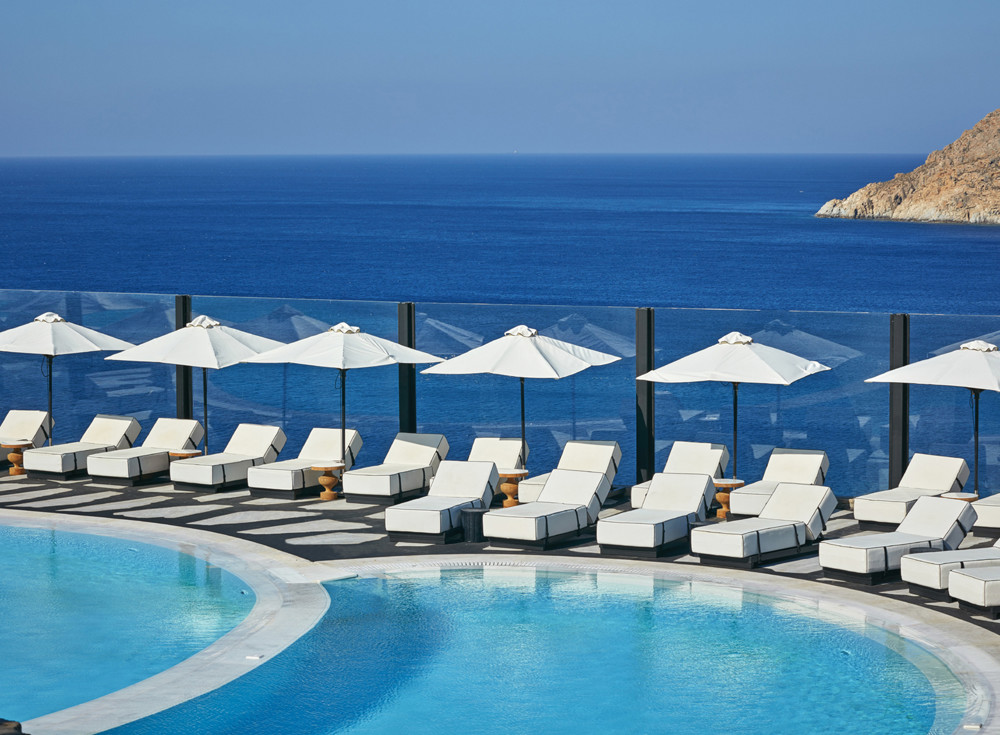 The Myconian Royal Resort is a luxury resort with privileged views over the longest fine sand beach on Mykonos. An illuminated rustic façade of Cycladic stone is the stage curtain to contemporary interiors and vast entertainment decks conceived by a celebrated Greek set designer who takes his dramatic cues from a blend of antiquity and new age fantasy. Spacious rooms and suites are cool sanctuaries with private balconies or vast terraces and appointed to the highest standard of comfort, with the option of your own infinity pool or Jacuzzi.