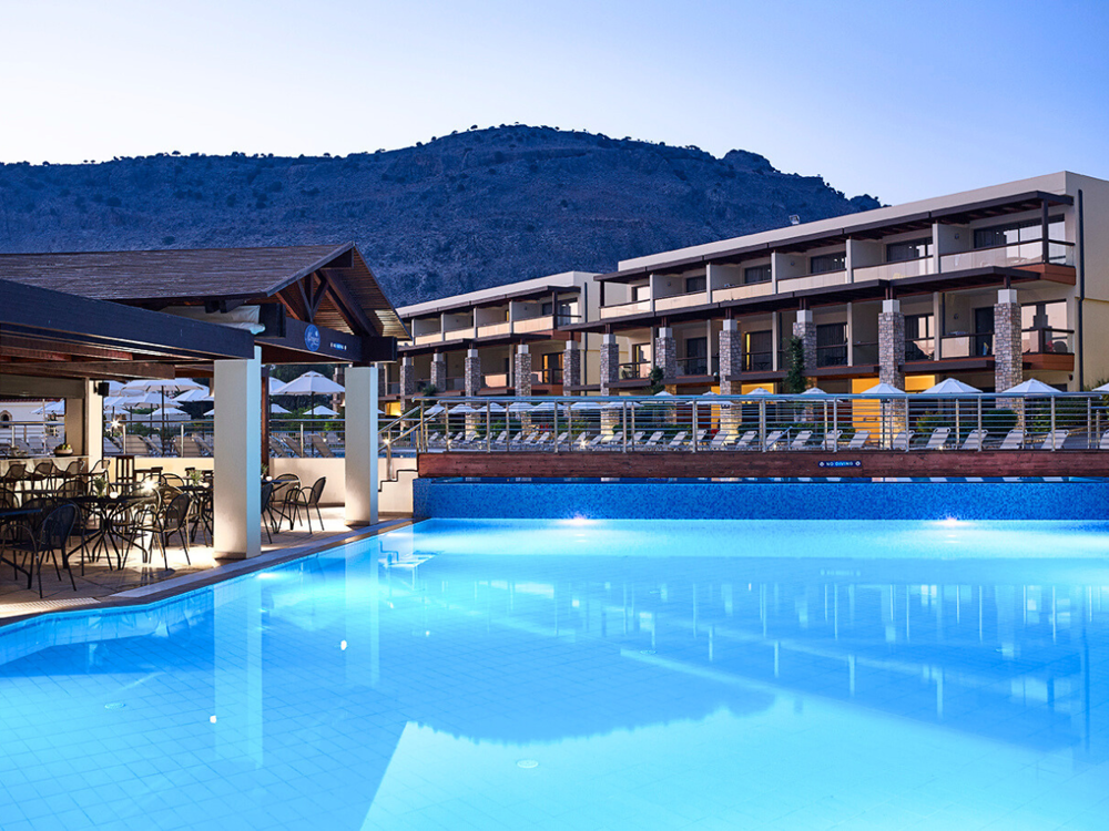 There’s a second pool, the Almira, with accompanying bars, and a nearby sandy Blue Flag beach and, at the neighbouring Lindia Thalassa hotel, a children’s pool, as well as a kids’ club with indoor games and a playground, to ensure fun for all the family.