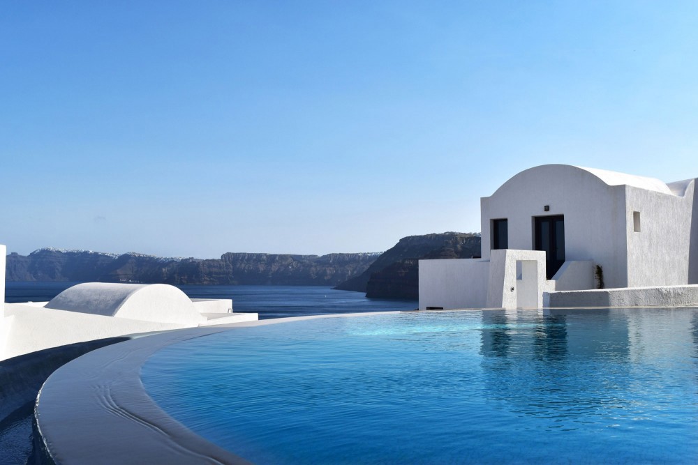 Three Bedroom Villa Private Pool (180 m2) Sleeps up to 6 persons. Each three bedroom villa exudes the tranquillity and allure of Cycladic oasis that has it all: sweeping views over the volcano, sophisticated interiors that tick all the luxury requirements, an outdoor jacuzzi and a private pool. The room features all the facilities as per the superior room above.