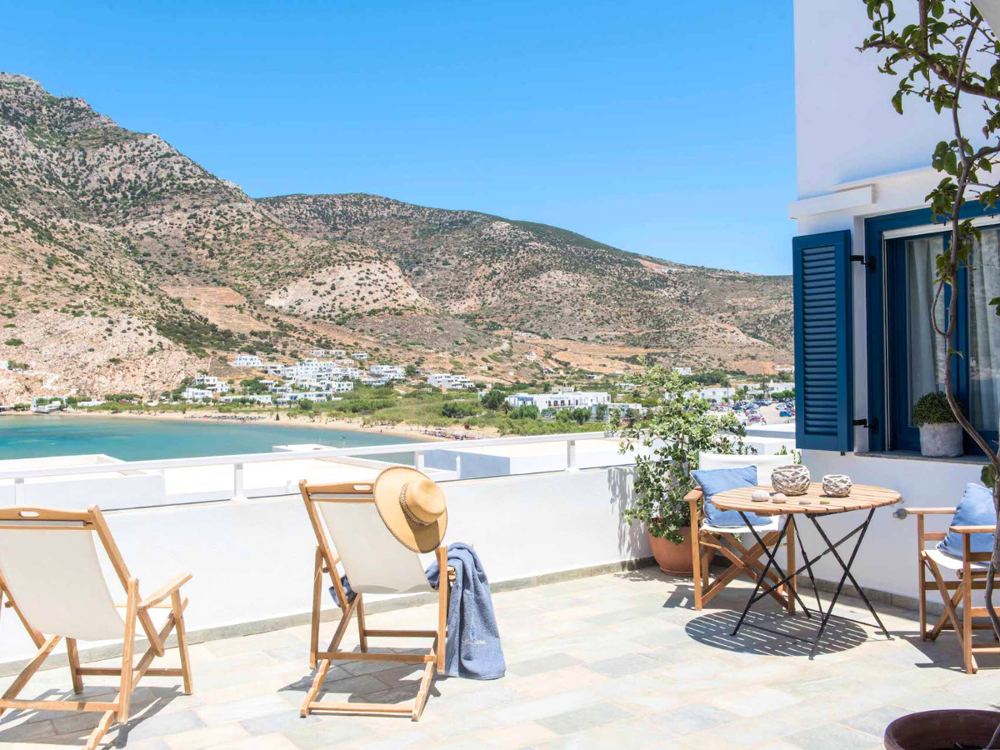 Sifnos House is a luxurious boutique hotel nestled in the heart of Kamares, just a short walk from the sandy beach and bustling port. Designed with a combination of traditional Cycladic architecture and modern sophistication, the hotel offers a serene and stylish retreat with each elegantly appointed room and suite featuring contemporary comforts including plush bedding, modern amenities and private balconies or verandas with stunning views of the sea or village. Guests can also unwind in the hotel’s spa facilities, enjoy a delightful breakfast with local delicacies or simply relax in the peaceful garden areas. Within walking distance, guests can explore charming waterfront tavernas, cosy cafes and local artisan shops as well as hiking trails leading to stunning viewpoints.