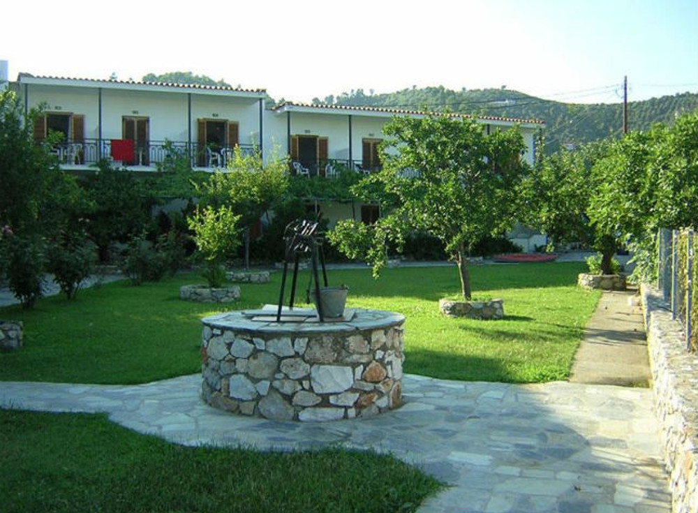 The Vontzos Hotel is perched on a hillside with lovely views down to the charming Achladies beach just just 50 metres away. All the rooms have balconies many of which share the view, or overlook the attractive gardens. Each is equipped with a TV and a mini-bar and fridge for keeping things cool, they are furnished for comfort and simplicity. The airy reception is open round the clock to accommodate late nights out in town and guests can keep in contact with the rest of the world if they want to with the satellite TV in the lobby. The Rose Garden Restaurant serves traditional specialities that are available throughout the day at a charge. The plentiful restaurants and bars in Skiathos Town and around the island are easily reachable on the island's regular bus service with a stop just 100 metres from the hotel.