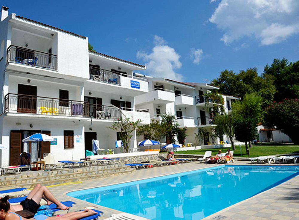 In a rural location through a pine forest approx. 400 metres from the main road to Koukounaries , this delightful complex of apartments, studios and maisonettes is set among lovely gardens with a real get-away-from-it-all feel.