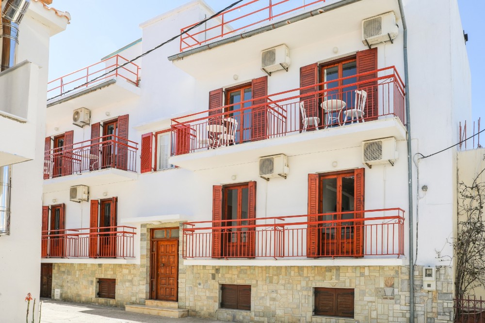 These simple traditional style studios are situated within a five minute walk of Megali Amos beach and a ten minute stroll down the hill to the heart of Skiathos town with its many shops, bars, restaurants and famous bustling harbour. The Alekos' location makes it an ideal base to discover the several beautiful beaches that Skiathos has to offer.