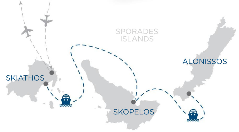 The Sporades with lush green vegetation and rocky coastlines. Skiathos and Skopelos combine a delicious liveliness and charm, while laidback Alonissos is a chill-out zone for walkers and wildlife lovers.