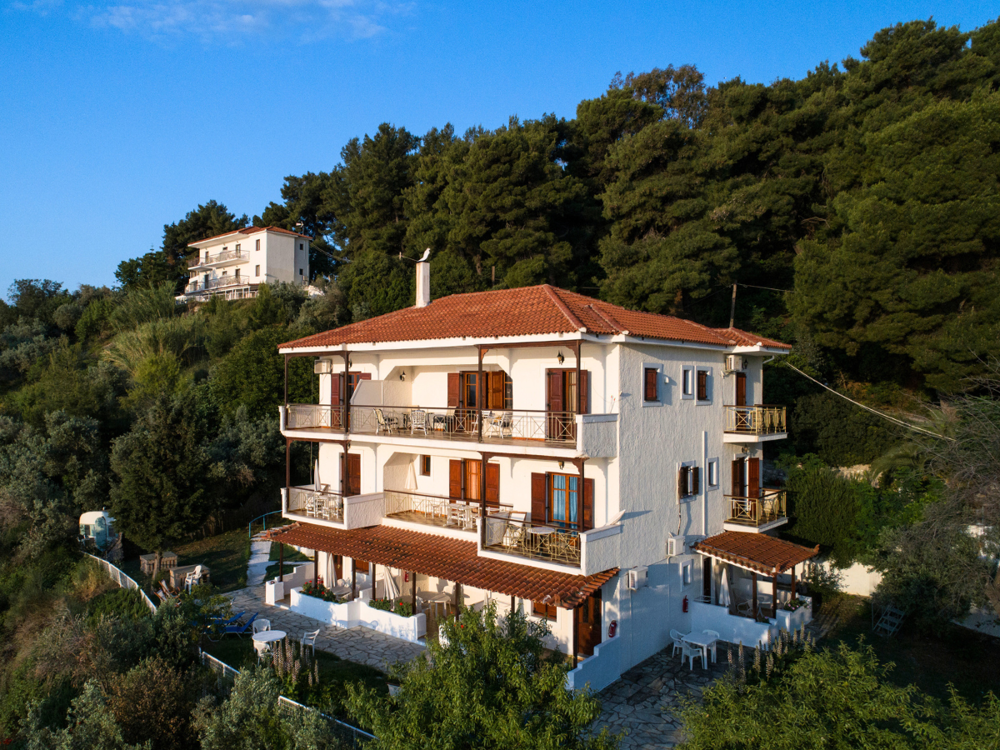 Nestled on the serene shores of Skiathos, Vassilias Beach Hotel offers an idyllic beachfront escape. This charming hotel is perfect for those seeking relaxation and natural beauty.