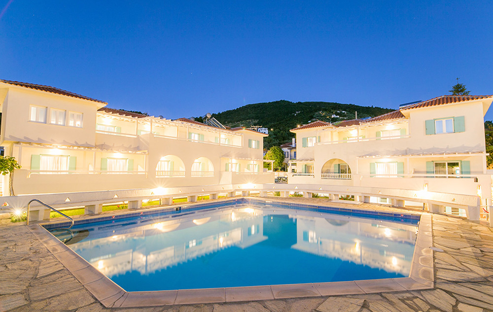 Sunrise Village Hotel is a proud member of Imagine Hotels Group providing quality and comfort to its guests. Located in one of the quietest areas of Skopelos, it is ideal for family holidays and visitors can relax by the large swimming pool and the gardens or alternatively enjoy the beach in front of the hotel. It features 36 well lighted studios and apartments all of them providing easy access to the exterior spaces. The exotic architecture and carefully designed outdoor spaces compose a beautiful sunny setting.