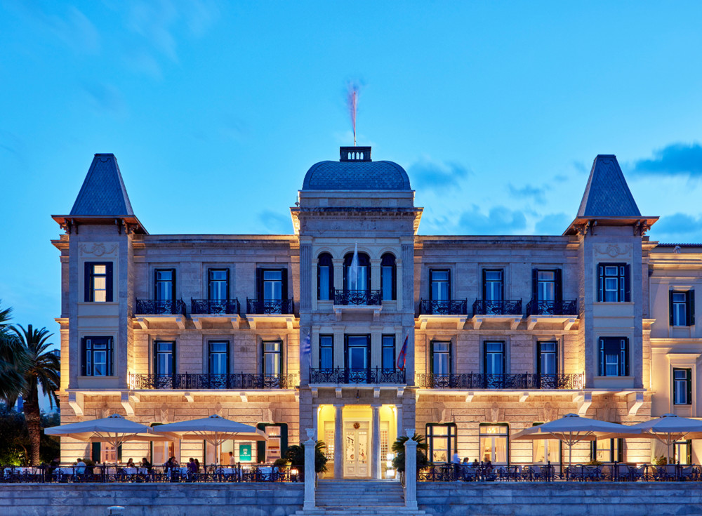 First opened in 1914, and tastefully restored, the Poseidonion Grand Hotel has two buildings with superior and deluxe rooms and suites, an open air cinema, a spa pool in a beautiful Mediterranean garden. Dining is taken to a new level at the farm to table Bostani organic farm dining where fresh produce is hand picked and cooked on the spot.