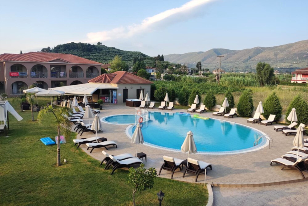 The accommodation is located in a scenic area of Alykanas on the north east coast of Zakynthos. The complex consists of 12 studios spread across two floors, all with a beautiful view of the garden. All studios are suitable for 2 people and can accommodate a child with the addition of a baby cot or an extra bed. There are two types of studios, modern and standard. They are surrounded by attractive, well kept gardens and hills with olive groves offering a peaceful environment for relaxing holidays.