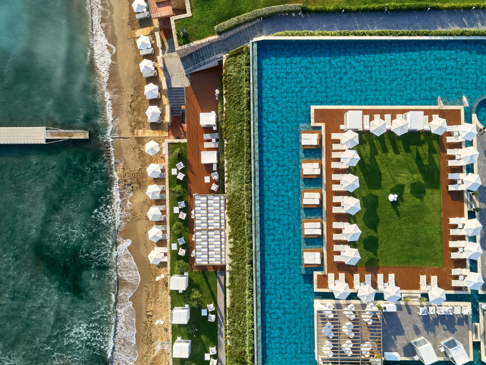 True to its name, the Lesante Blu surrounds you with spectacular views of the Blue Sea. Located in the picturesque village of Tragaki, the Lesante Blu is a simply one-of-a-kind experience offering exclusivity, peace of mind and five star comfort. Its ‘all-about-you’ mentality can be experienced via the private pools, the adults-only policy, the state-of-the-art suites and the discreet staff. The fine selection of restaurants offering you creative Mediterranean dishes by the sea, the secluded beach, the 24/7 impeccable room service and the private heliport, all add up to a unique stay experience.