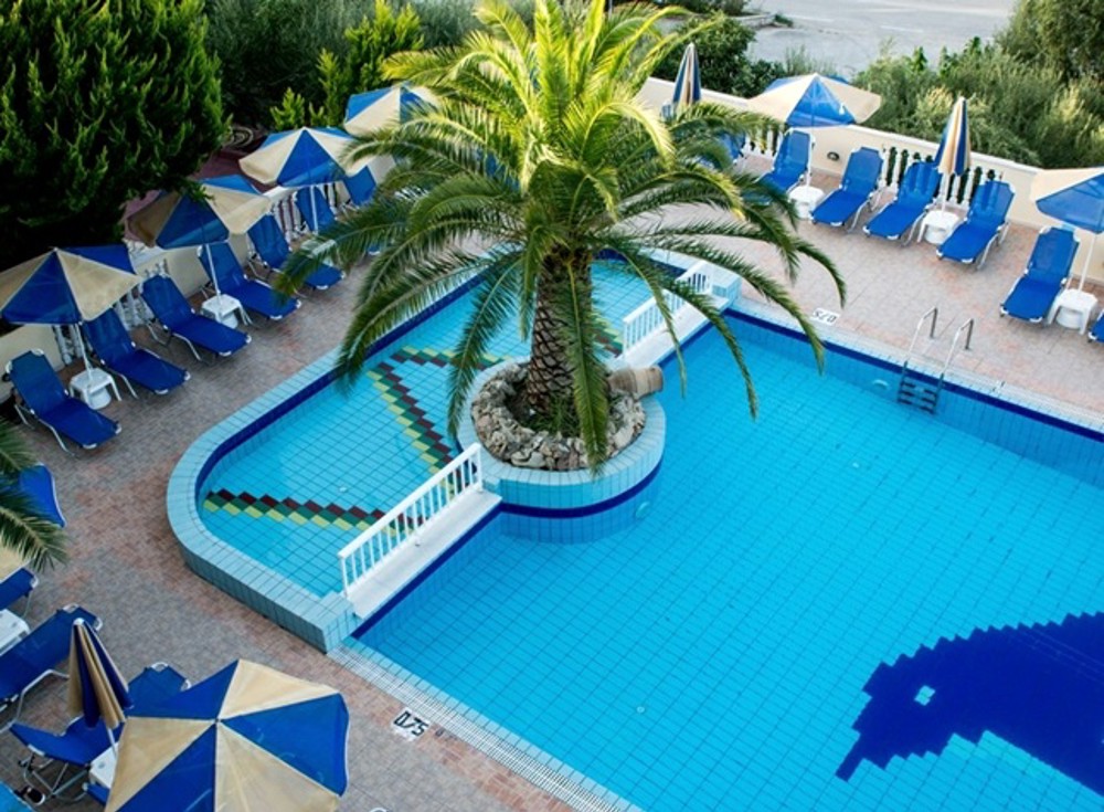 The complex sits above Tsilivi with panoramic views across the resort, particularly from the buildings located at the top of the complex and features a swimming pool and bar.