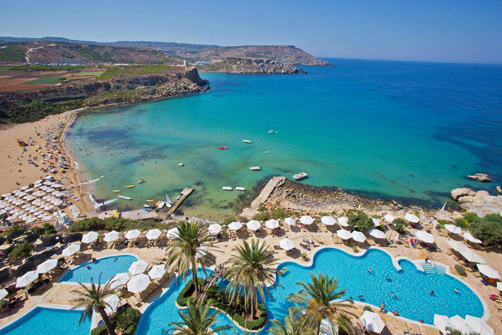 Situated on the northwest coast of an island paradise, the Radisson Blu Resort & Spa, Malta Golden Sands lies on the magnificent shores of Golden Bay Beach, near Mellieha. This amazing beach resort offers everything you could wish for from an upscale spa hotel, including panoramic views and easy access to the sand and clear blue saltwater.