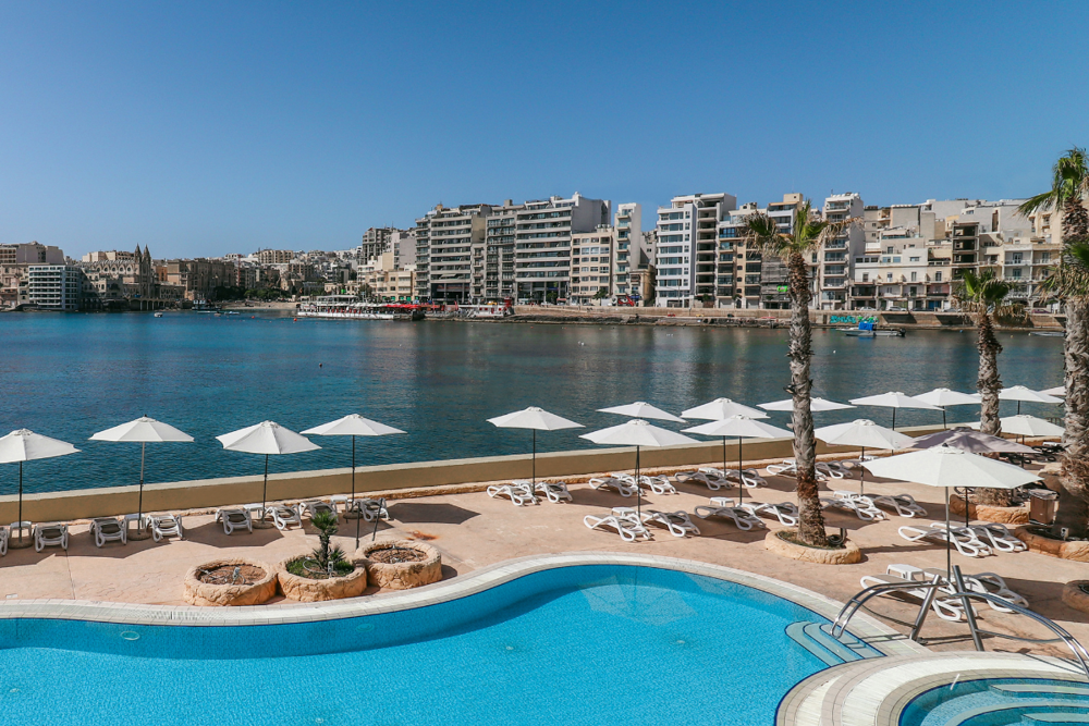 The Cavalieri Hotel is designed with stylish, large, light, open spaces, comfortable furnishings and an attractive decor. It is situated in a unique and quiet location on the fringes of the most sought after tourist area in Malta - St Julians. Whilst directly on the water's edge overlooking picturesque Balluta Bay and the Mediterranean Sea beyond, the hotel is also located on the doorstep of the Portomaso Yacht Marina, 300 metres to the Paceville nightlife area, 400 metres to the closest casino and 200 metres to Spinola Bay - the heart of St Julians.