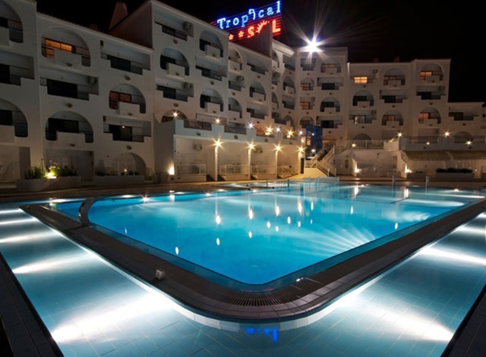 Feel right at home with a stay at the Algarve’s modern Tropical Sol Apartments, an expansive complex in Albufeira just a short distance away from multiple beaches. The apartments are just 500 metres from Rua da Oura, a lively tourist area which is home to a variety of shops, restaurants and bars as well as plenty of nightlife options when the sun goes down. The historic centre of Albufeira is just a little further afield, perfect if you want to explore the famous square and soak up the local culture. The Tropical Sol Apartment complex comprises a five-floor building with 75 abodes ranging from studio apartments to one-bedroom apartments. Each option comes complete with modern amenities including air conditioning, a satellite or a cable TV, a kitchenette with a mini fridge and more. The apartments are centred around a swimming pool with a snack bar (open during high season) as well as a terrace where guests are invited to sunbathe on the loungers.