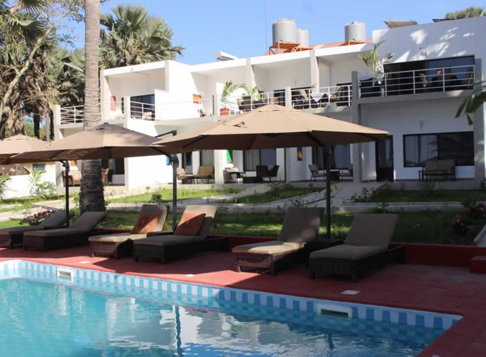 Most of the 10 spacious and modern rooms have a view across sandy Bijilo Beach to the sea and feature an extra-long bed, flat-screen satellite TV, minibar, fridge, desk, safe, fan and a terrace.