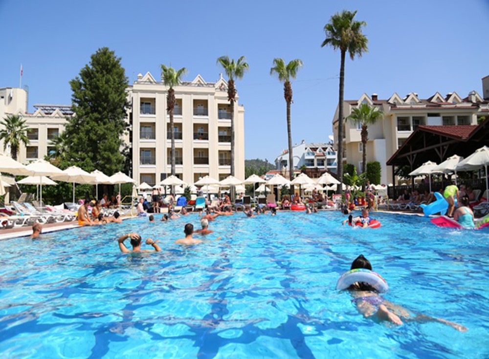 The Club Julian Hotel is situated only 1.5 km from Marmaris. Relax and soak up the warm rays of the Turkish sun, whilst the children are kept entertained with the waterslides, regular activities and competitions. This four star destination will definitely amaze you with its exceptional facilities and attentive accommodation. The Club Julian Hotel is the perfect place for those who want an unbeatable holiday combined with lots of leisure facilities