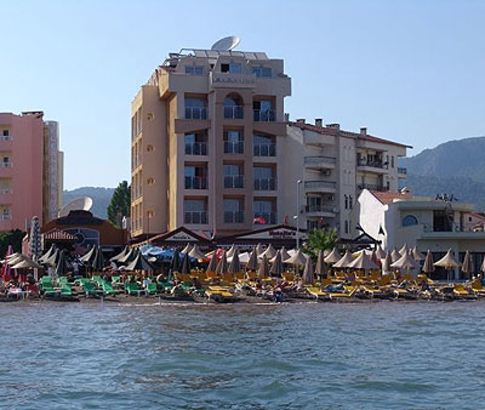 The 3 star Marmaris Beach Hotel is situated by the beach, and about 700 metres from the centre of Marmaris, in the Aegean Region of Turkey. This beach hotel was renovated in 2006 and offers a total of 48 rooms over 5 floors. It is air-conditioned and has a lobby with 24-hour reception, a safe, currency exchange facility and lift access. Bar and dining facilities are also offered. Guests can enjoy the outdoor swimming pool, with sun loungers. Evening entertainment at Marmaris Beach Hotel includes karaoke nights, quiz nights and BBQ night. The Marmaris Beach Hotel are a favourite holiday destination for many holiday makers of all ages.